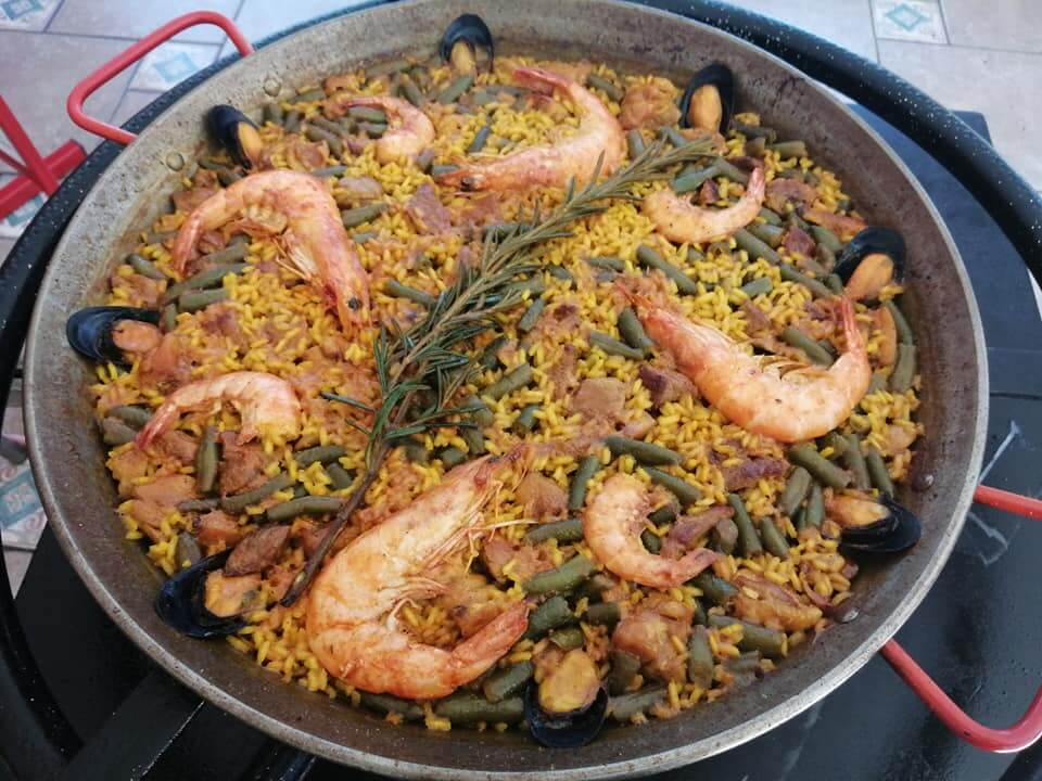 Paellas Gourmet a Domicilio en San Luis PotosíPaellas gourmet originales. (Mínimo 6 personas) Las entregamos en la "paellera" donde las cocinamos y nos la devuelven al dia siguiente. Todo original y siguiendo lo que marca la tradición ---------------------------------------------- - Paella Valenciana original (conejo, pollo, alcachofas y ejotes)... $270/persona - Paella Valenciana sustituyendo el conejo por costillas de cerdo.... $230/persona - Paella Mixta (pollo, costilla, ejote, alcachofa, mejillones y camarones)... $250/persona - Paella de Marisco (mejillones, almejas, pacotilla, camarones, anillos de calamar)... $285/persona - Arroz negro (similar a la de marisco, con trozos de sepia y tinta de calamar)... $325/persona - Arroz Alicantino (similar a la valenciana, garbanzos, espárragos trigueros y pimientos fritos) ... $250/persona - Paella de verduras (10 vegetales y el caldo también es vegetal)... $280/persona Los encargos son paellas a partir de 6 personas minimo. Encargos minimo 1 dia de anticipación. |