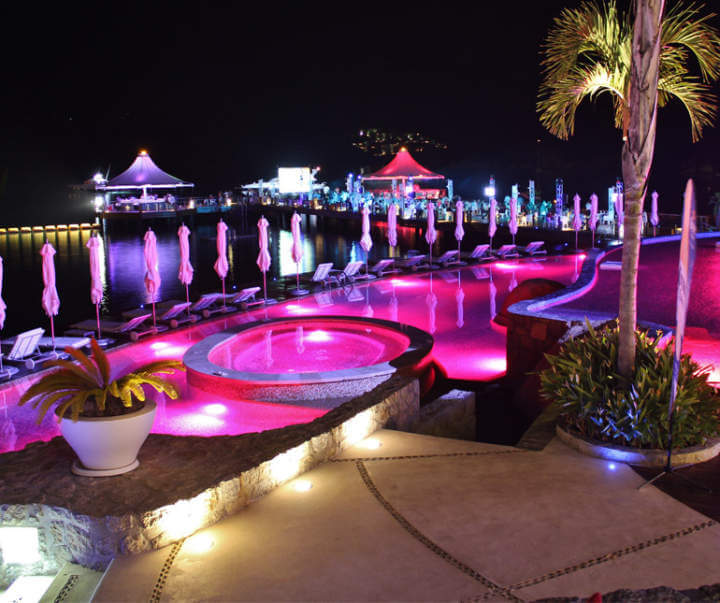 - B Fun. Albercas iluminadas, noches estrelladas y una espléndida vista a la Bahía crean un entorno mágico, ideal para celebrar.