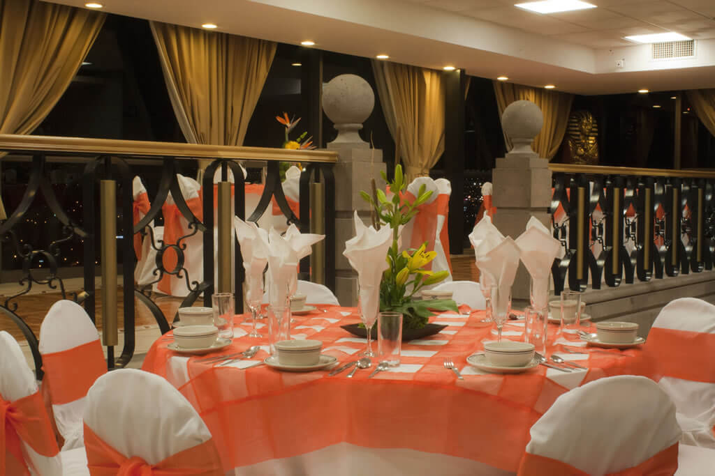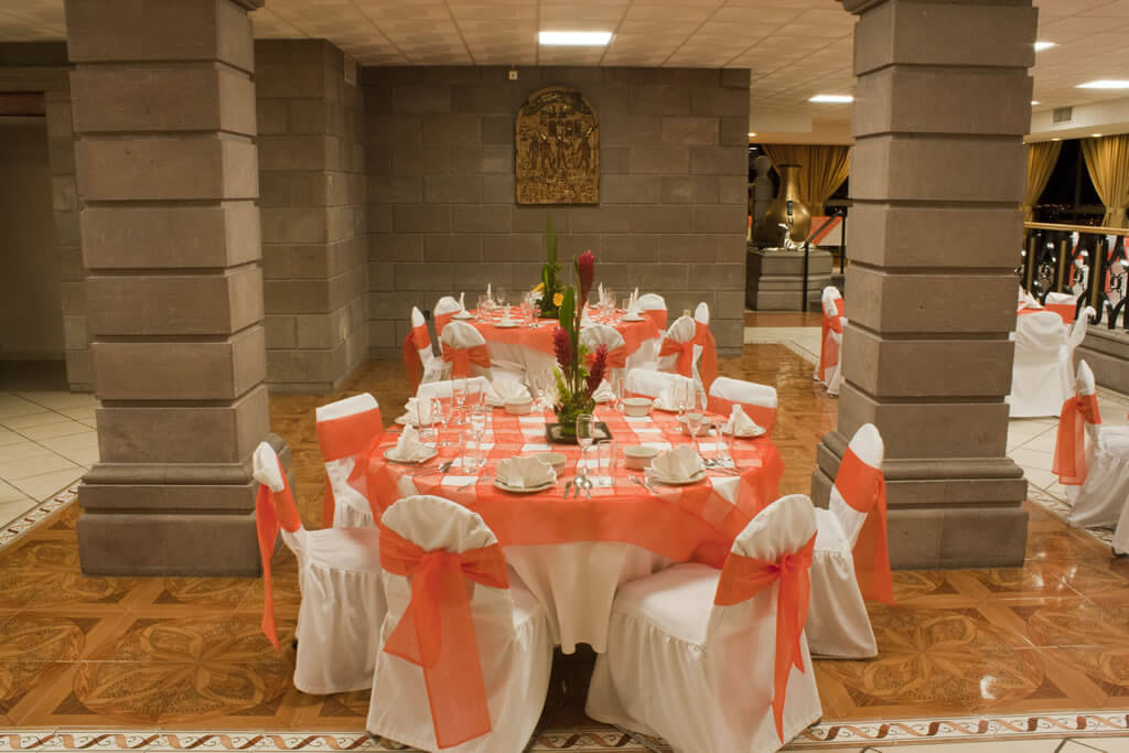 Hotel Real PlazaContamos con salones ideales para la realización de su evento. Desde 10 hasta 250 invitados en diferentes recintos, ya sea un evento social o empresarial, el servicio que nos caracteriza hará de su reunión un momento inolvidable. Salón Keops Con una inmejorable vista panorámica de la ciudad y del área de la alberca, el salón Keops en el piso 14 del hotel, ofrece una capacidad de hasta 200 personas con el máximo confort y lujo. Decorado con un hermoso y original estilo egipcio, tendrá en su evento un momento mágico para compartir con las personas que lo acompañen.