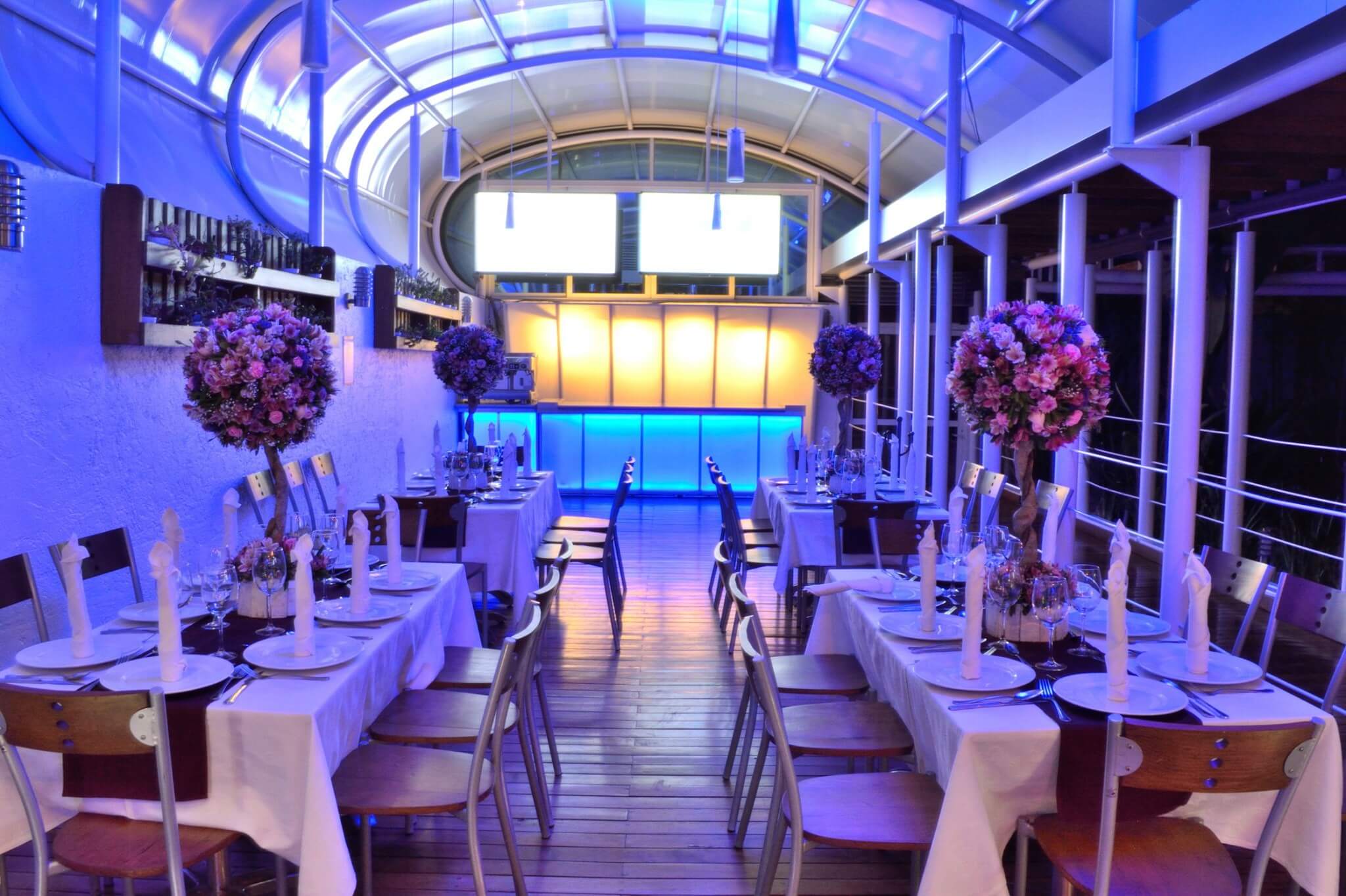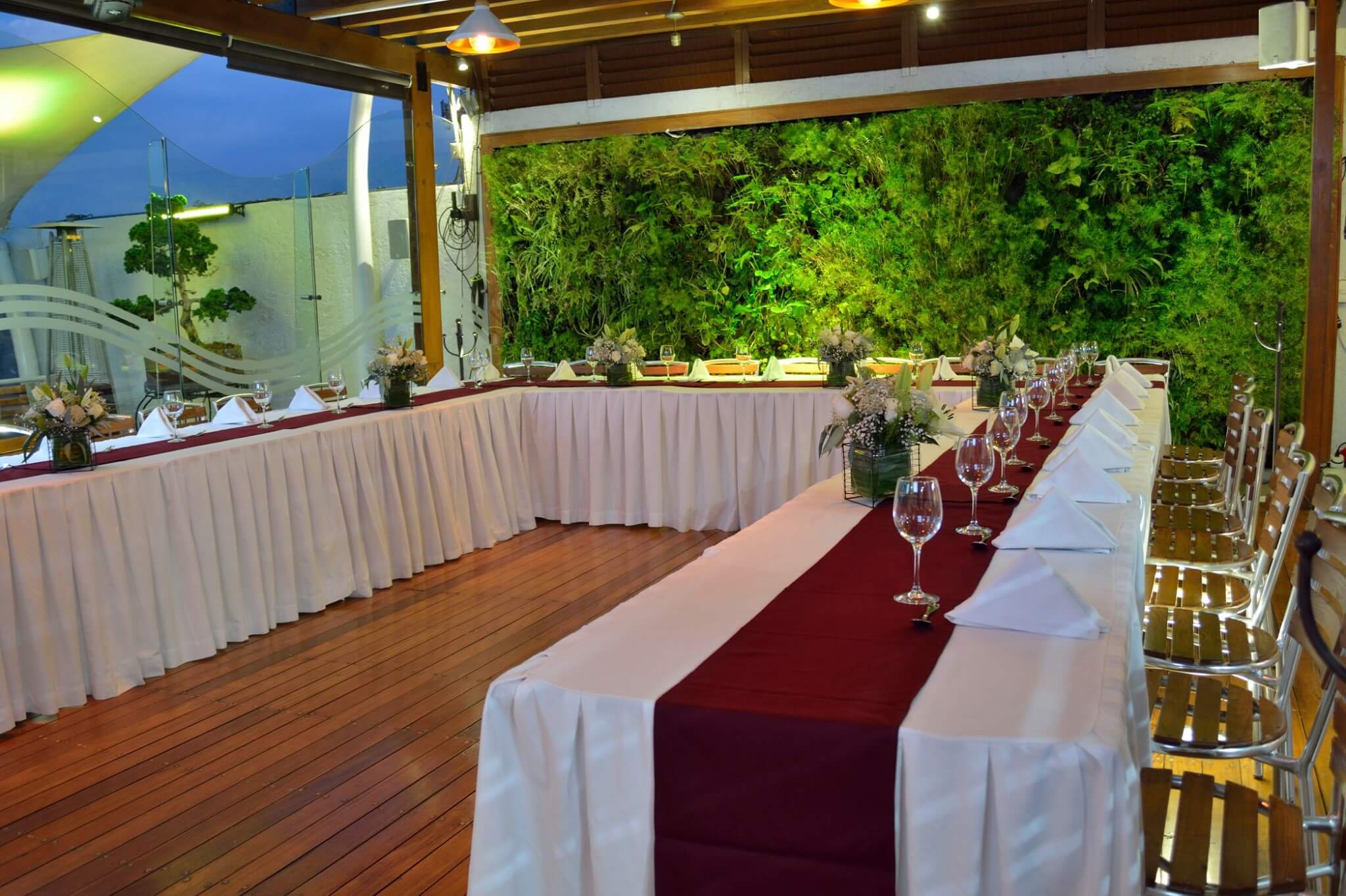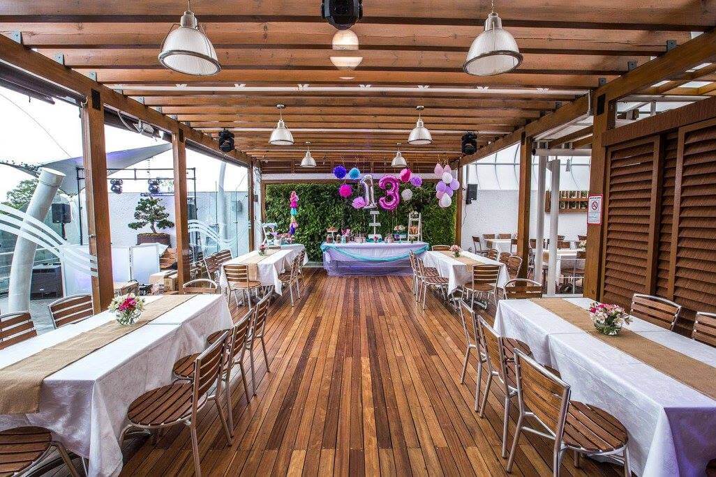 Roof GardenBodas religiosas pequeñas, bodas civiles y aniversarios de boda; bautizos, desayunos, comidas y cenas de tipo social, renta de la sala para lanzamientos de producto, desayunos corporativos, meeting, eventos networking. Equipamiento: