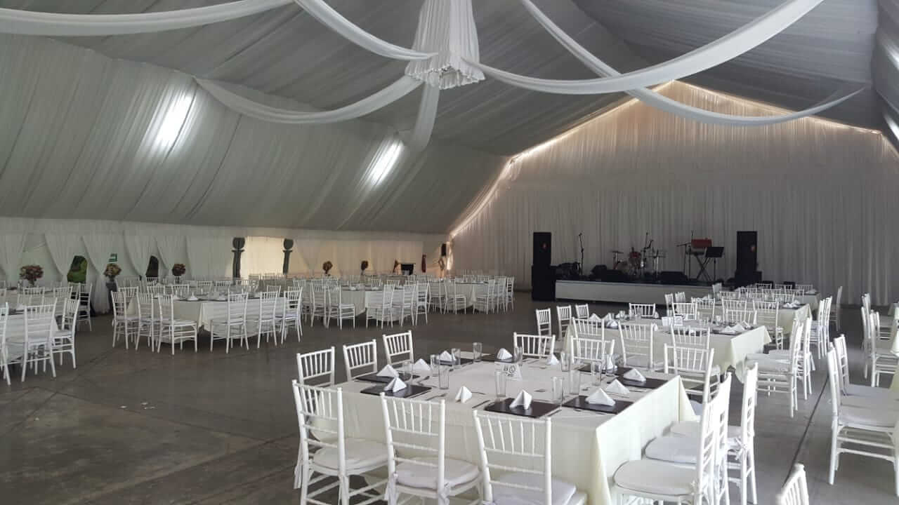 Contamos con jardín, salón, carpa, pista de baile, estacionamiento, cocina y servicios de banquete, música y mucho más.