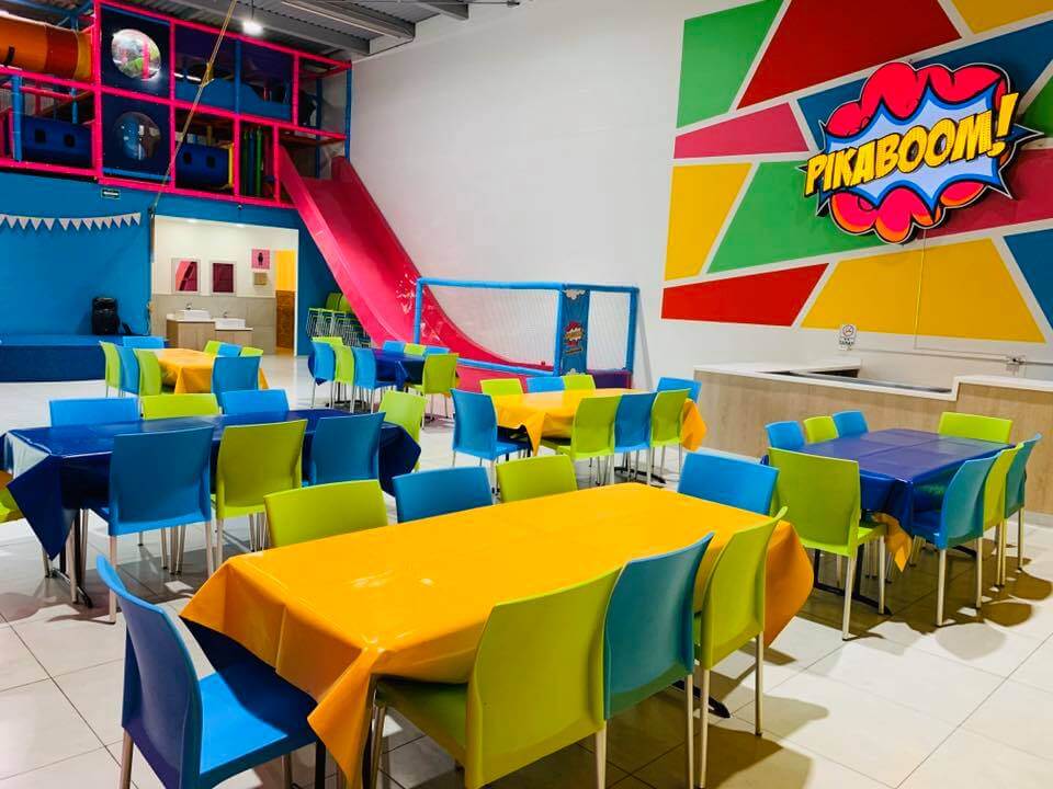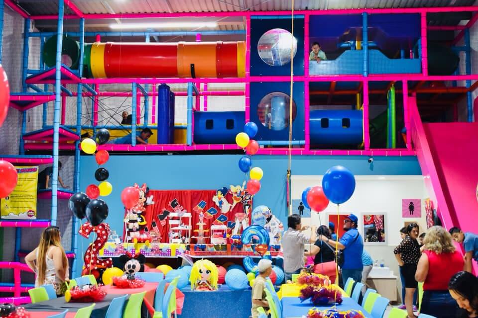 - Área de juegos infantiles (resbaladilla gigante, tumblings, alberca de pelotas, alberca de esponjas y mucho más.