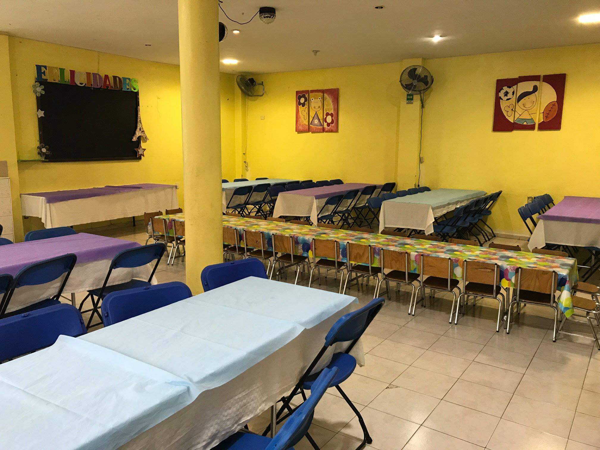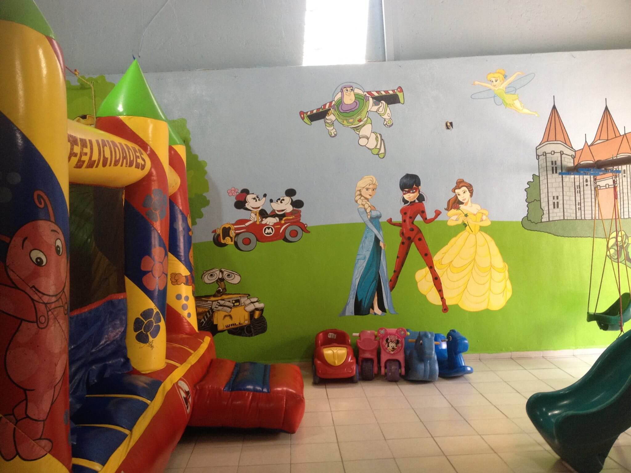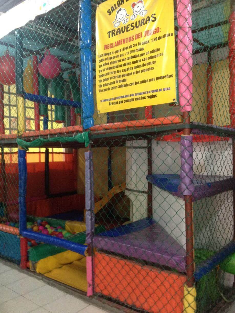 Salón de Fiestas TravesurasContamos con: área techada mobiliario para 100 personas, laberinto, brincolín, juego múltiple con resbaladilla trepadora y columpios, gimnasio con resbaladilla para bebes y juegos montables, llame para mayor información para su evento. |