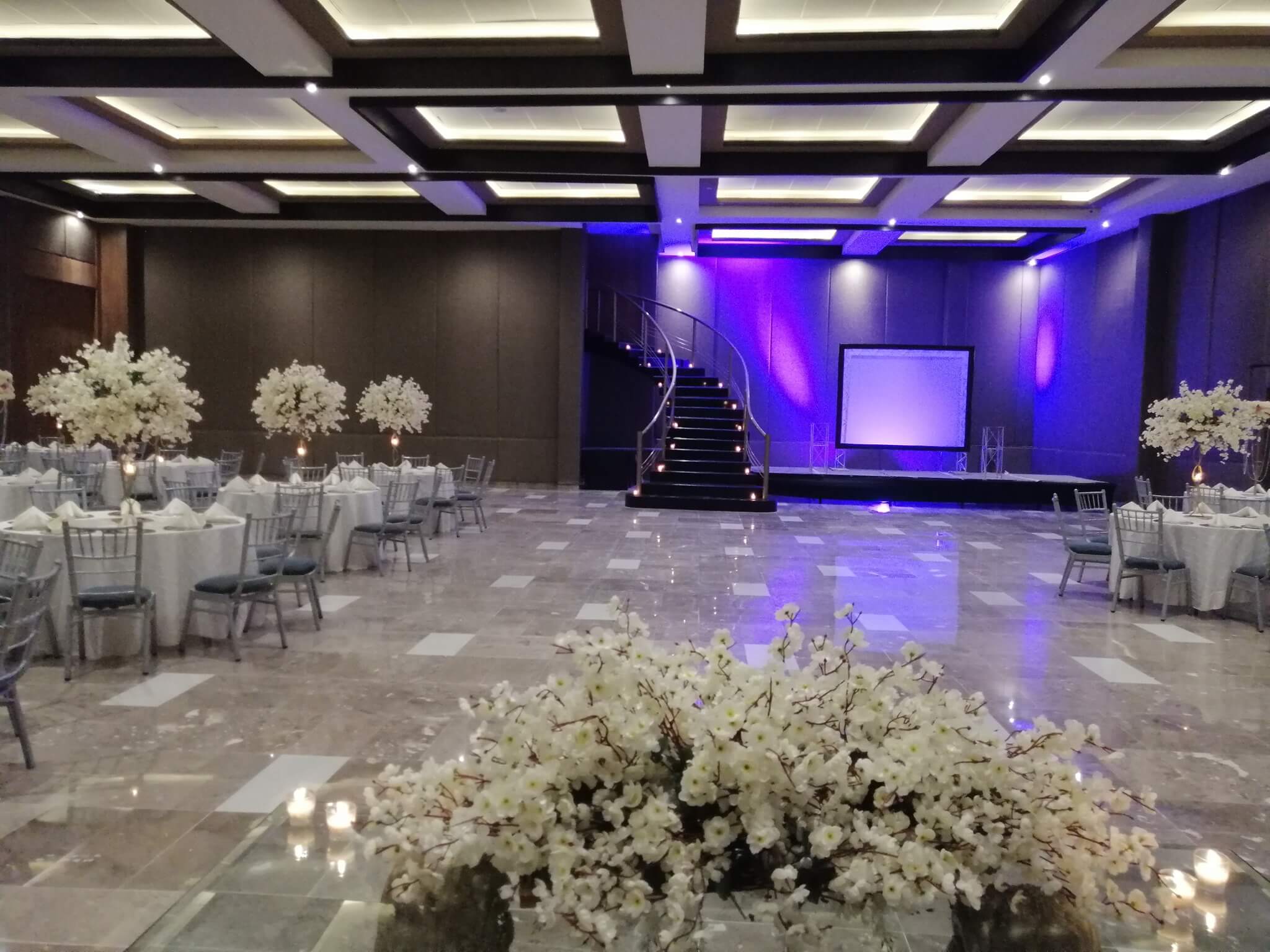 Pone a tus disposición tres elegantes espacios con finos pisos de mármol, aunados a un hermoso diseño en sus techos de doble altura, iluminados arquitectónicamente , lo que hacen de nuestros salones un lugar cálido, elegante y confortable para tus invitados además de tener como ventaja que se adaptan a cualquier montaje que tengas planeado, esto por sus amplios espacios y sus estratégicas distribuciones.