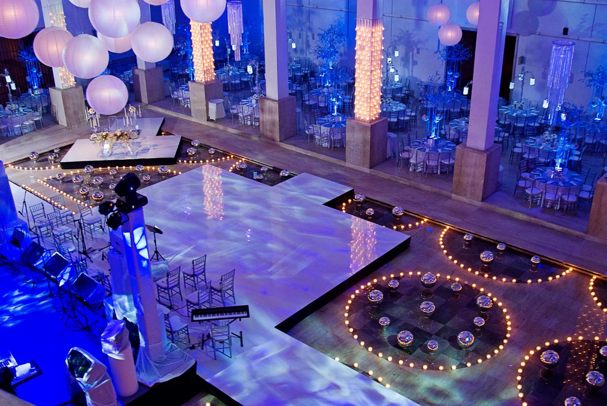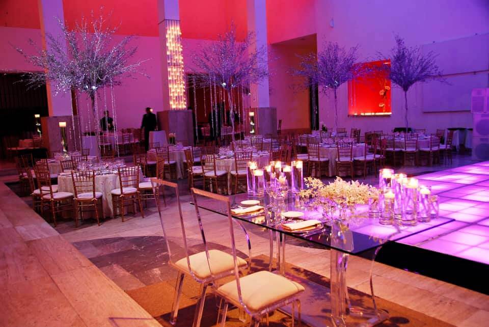Patio Central Situado entre grandes columnas de mármol y rodeado de cinco salas de exposición, este espacio le dará un toque exclusivo y distintivo a su evento. Capacidad: 800 personas. Ideal para: Cenas de gala, conciertos, entrega de reconocimientos, presentaciones de producto, eventos sociales y conferencias. Pasillo Principal Ubicado frente al espejo de agua del Patio Central, puede decorarse con diseños de velas dándole un toque mágico y cálido a su recepción. Capacidad: 300 personas Ideal para: Cocteles, cenas de gala, conferencias, presentaciones, y festejos especiales.