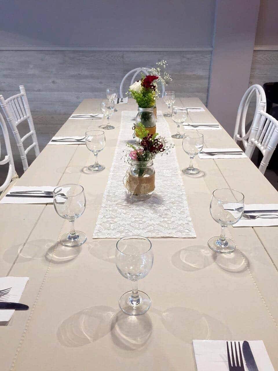 - Montaje Completo del Salón (Mantelería, Loza, cuchillería y cristalería fina)