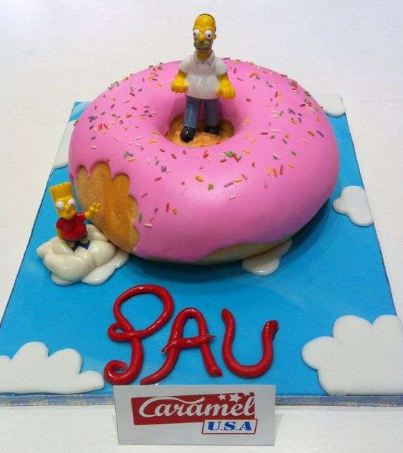 La famosa dona de los simpsons en tamaño enorme, para partir un poco a tus invitados en la celebración, con un toque de fondant y pan delicioso.