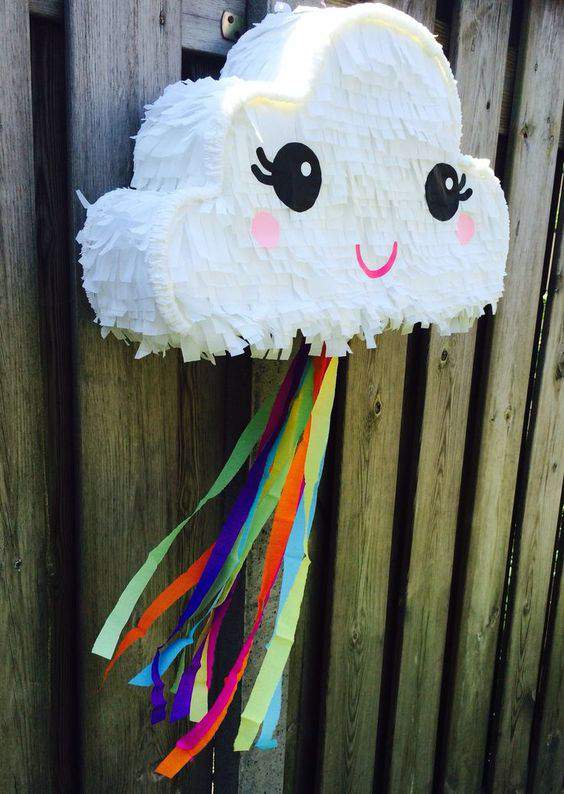 Una piñata en forma de nube arco iris hará aun mas el toque perfecto para endulzar a los niños al momento de romperla.