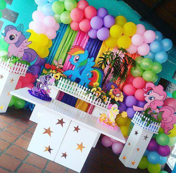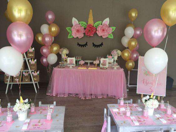 Sin duda hará un paraíso poner algunos detalles de los unicornios y los colores con globos decorativos.