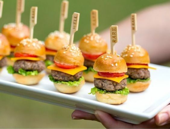 Unas mini hamburguesas solo para disfrutar, este toque tan especial hará abrir tu apetito y disfrutar la fiesta desde un principio.